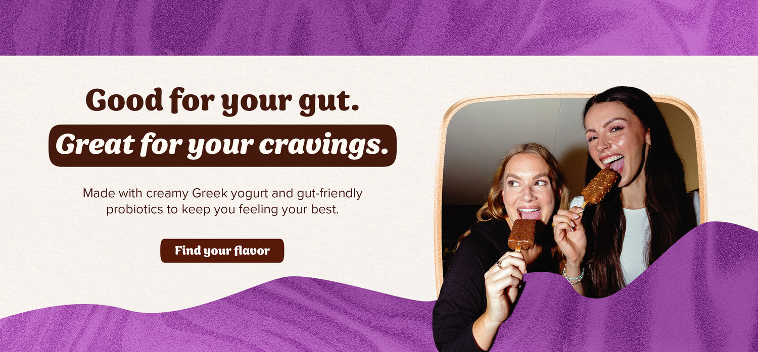 But the goodness doesn’t stop there. Each crave-worthy bar is less than 150 calories, made with real milk & cream, and plenty of gut-friendly probiotics.